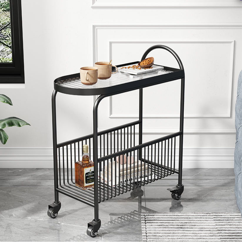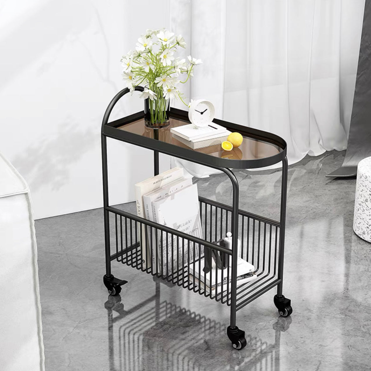 Modern Glass Top with Storage Double Tier Living Room Accent Side Table