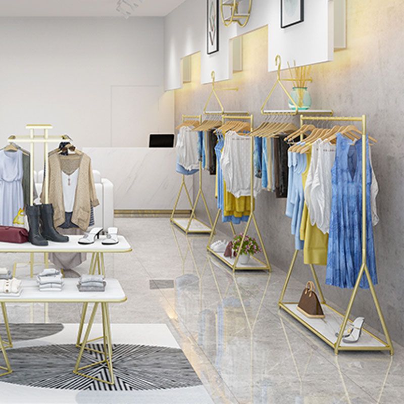 Modern Metal Hall Stand Storage Shelf Hall Tree Coat Hanger in Gold