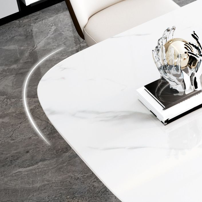 Modern Rectangle Dining Table Set 1/2/5/6 Pieces Dinette Set with White Sintered Stone Top