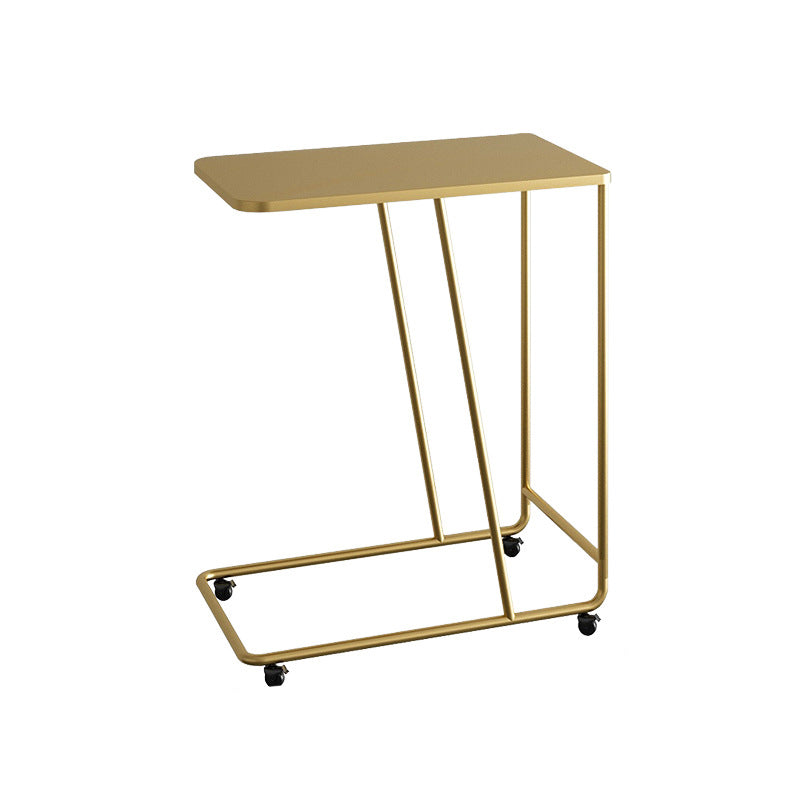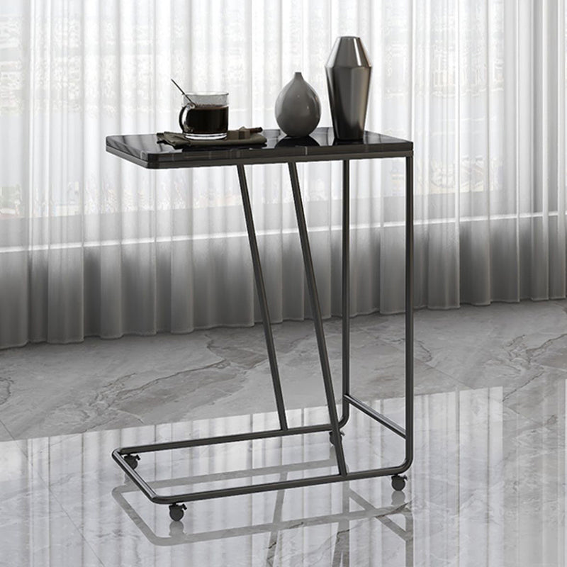 Modern Rectangular Side Table 19.7" x 11.8" x 22.8" Metal/Stone End Table with Casters