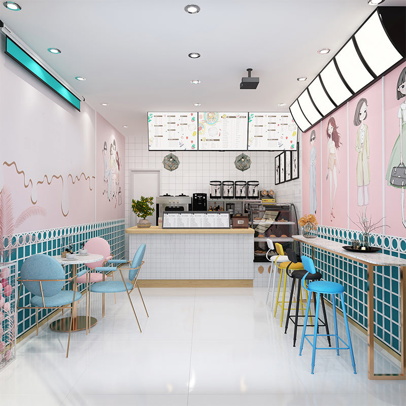 Modern Round Counter Stool Coffee Shop Leather and Metal Counter-height Stool