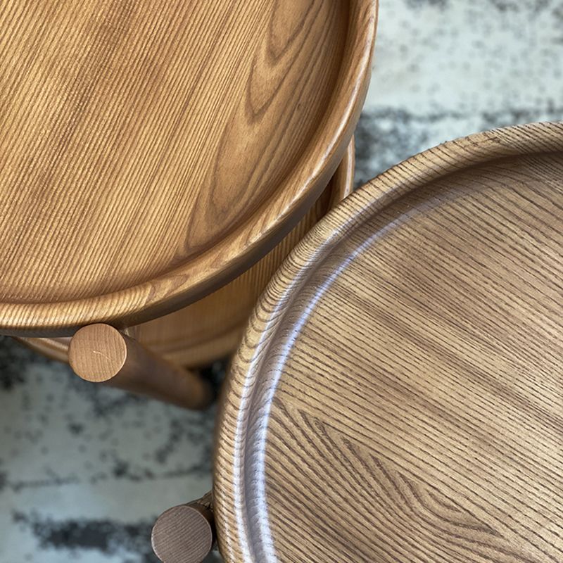 Modern Round Tray Top Side End Table 3 Legs Double Tier Side Table