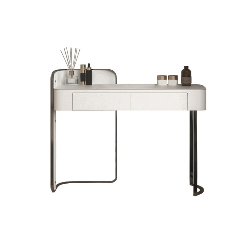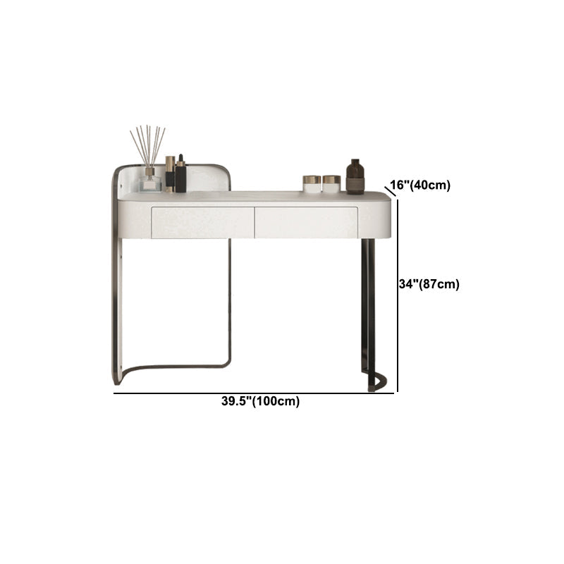 Modern Simple 2-Drawer Vanity Table Stone Top Dressing Table in White with Stool