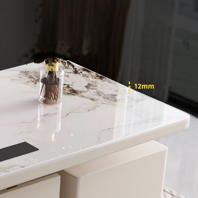 Modern Stone Office Desk Rectangular Shape Task Desk with 2-Drawers for Office