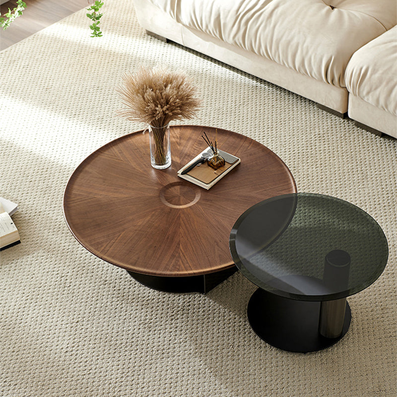 Modern Style Coffee Table with Square Block Base Design Round Glass/wood Table