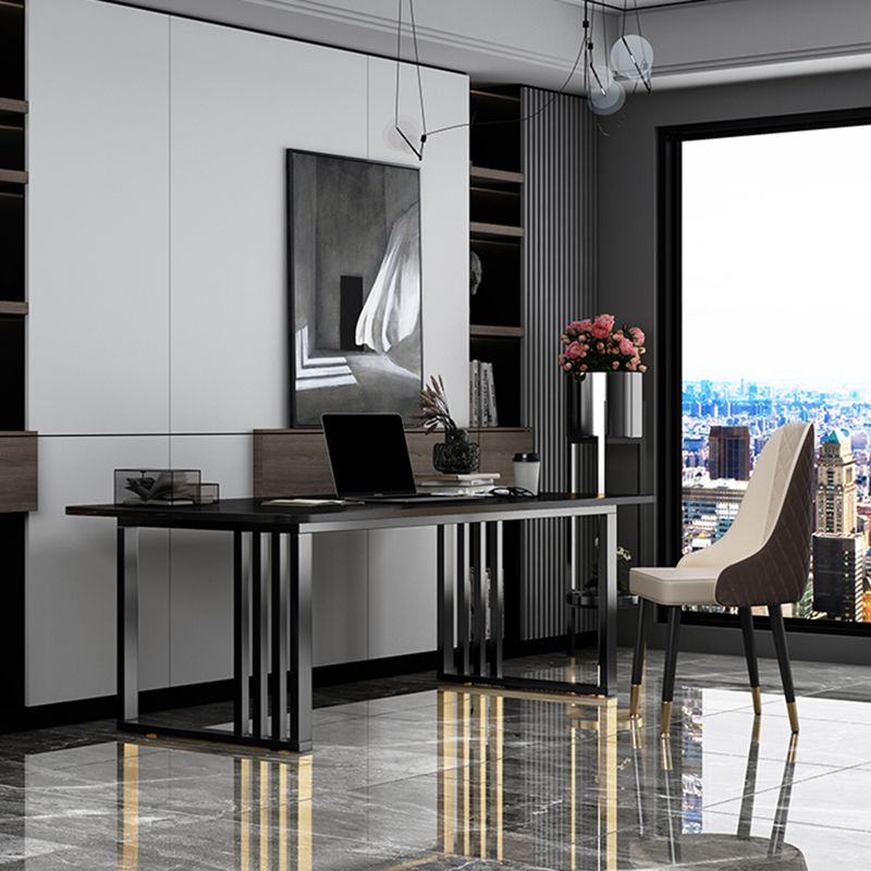 Rectangle Stone Top Office Desk Black Industrial Writing Desk for Office