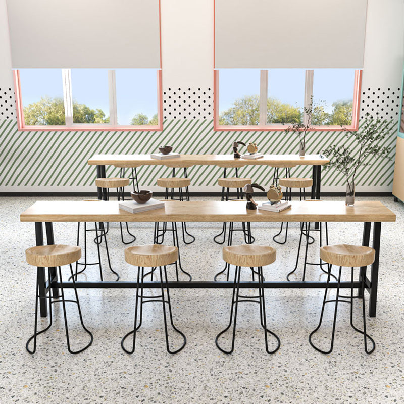 Rectangular Pine Wood Top Bar Table Luxurious Bar Table with Trestle Base in Black