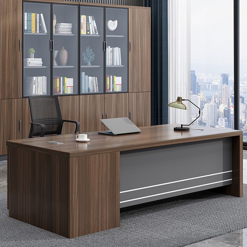 Rectangular Shaped Executive Desk Wood with 3 Drawers in Brown