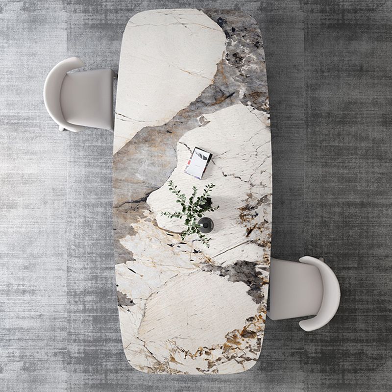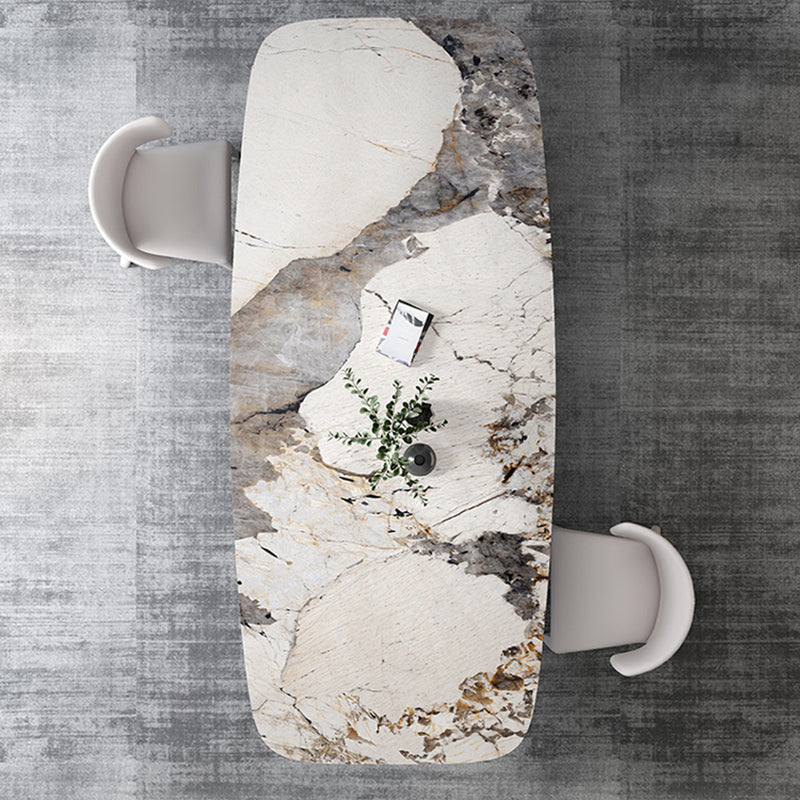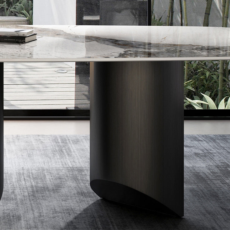Rectangular Stone Dining Table Modern Green White Gold Furniture with Double Pedestal