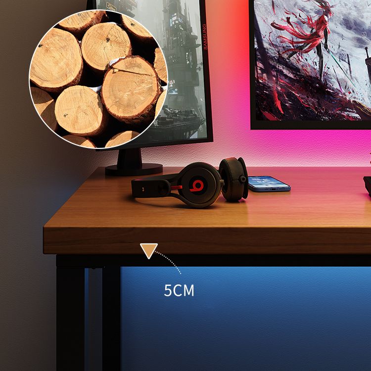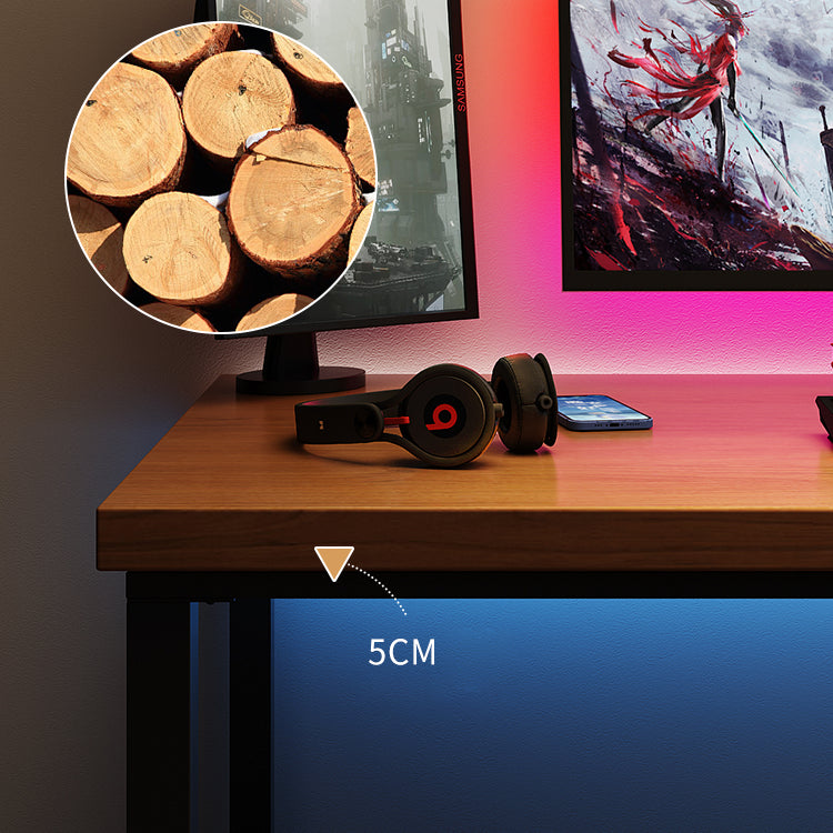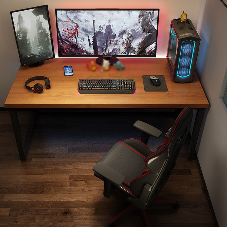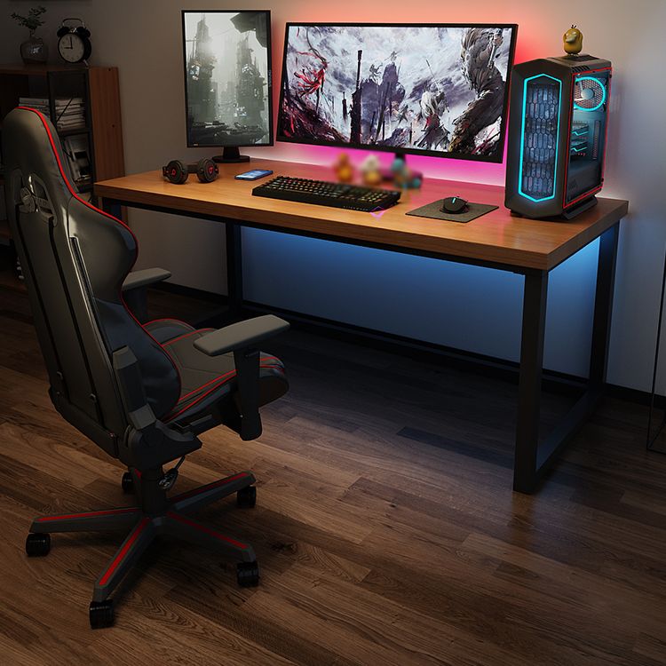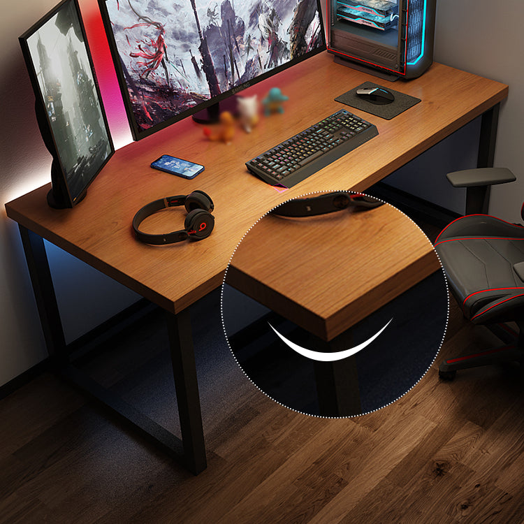 Rectangular Writing Desk Solid Wood Top Desk with Metal Black Legs