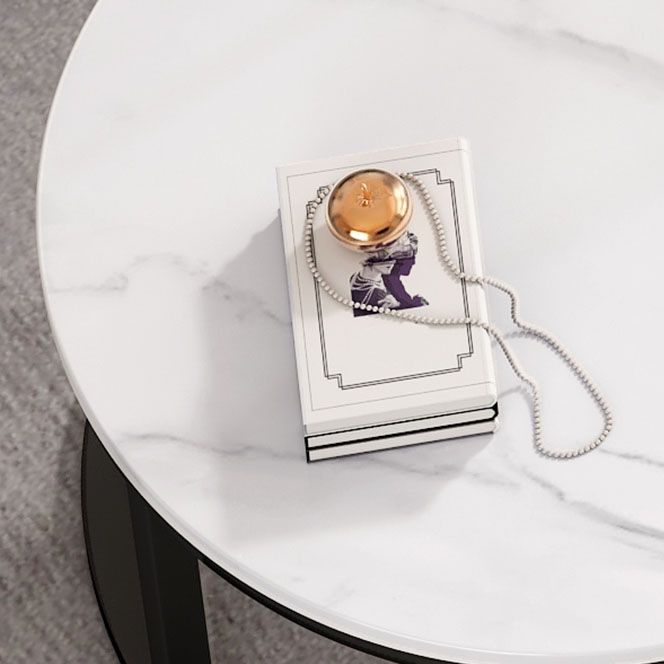 Round Slate Top Side Table 21.65" Tall Metal Abstract End Table with Shelf