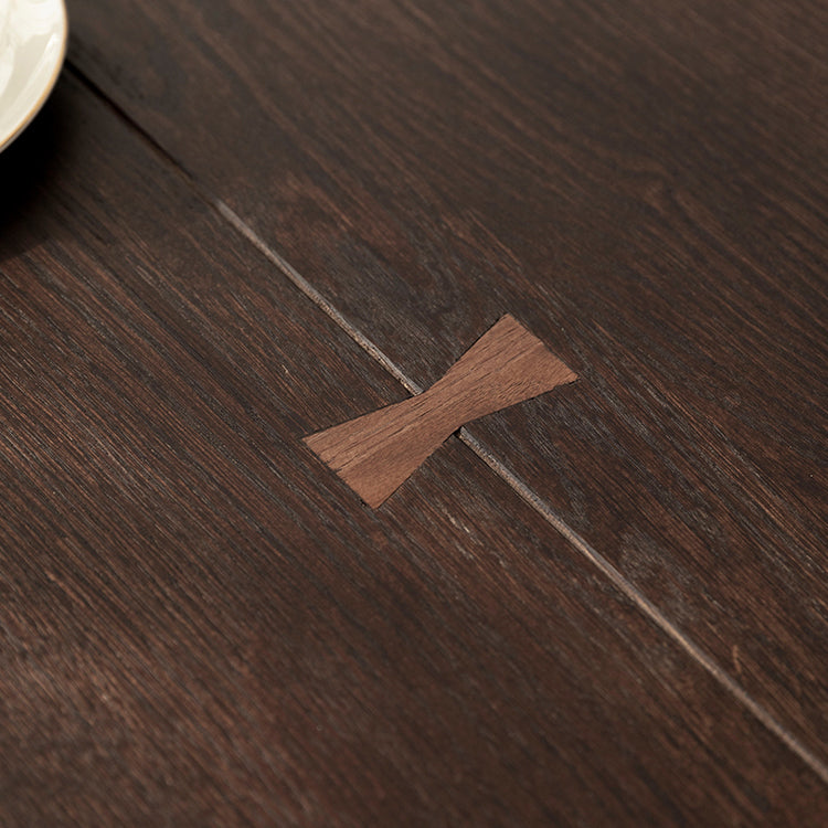 Round Solid Wood Dining Table Brown 4 Legs Dining Table with Metal Base