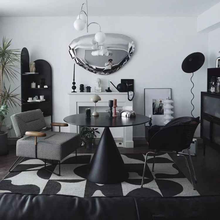 Round Stone Dining Table Modern Pedestal Dining Table in White and Black