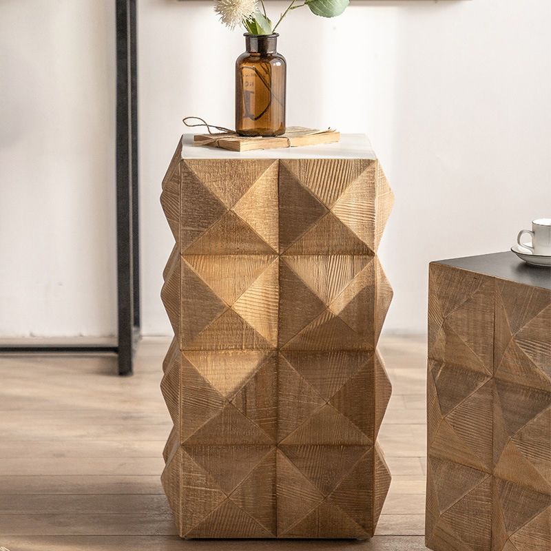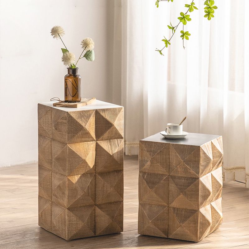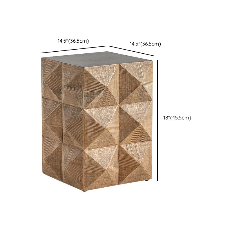 Rustic Solid Wood End Table Drum Square Shape Accent Side Table