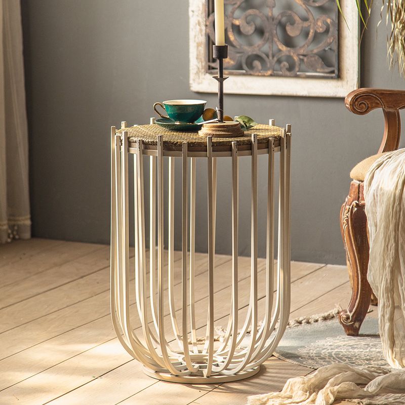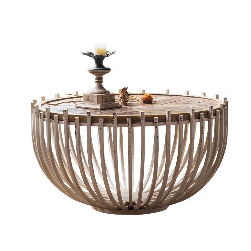 Rustic Solid Wood End Table Round Accent Side Table in Distressed Finish