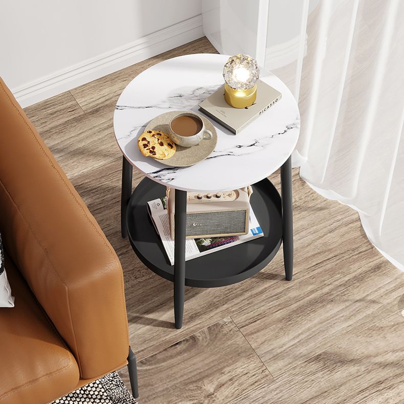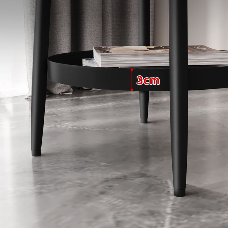 Stone and Iron Nightstand Round Open Storage Night Table Lower Shelf