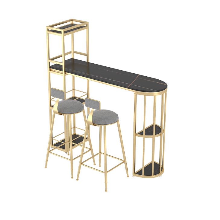 Stone Bar Dining Table Glam Style Bar Table with Double Pedestal for Living Room Balcony