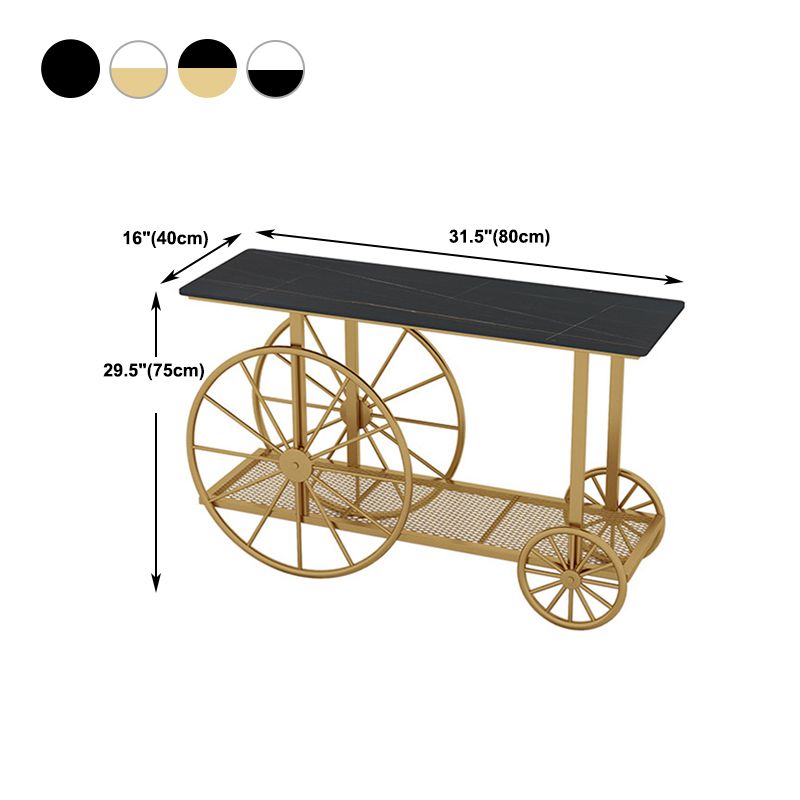 Stone Console Table Scratch Resistan Table Rectangle Accent Table with Casters