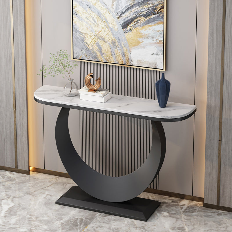 Stone Half Moon Accent Table 1-shelf 31.5" Tall Console Table