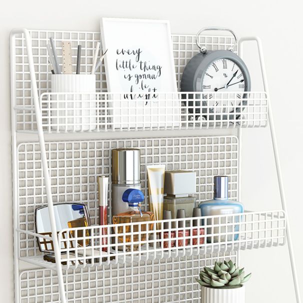 White/black/gold Metal Iron Nightstand with Storage Rack 4 Legs Nightstand