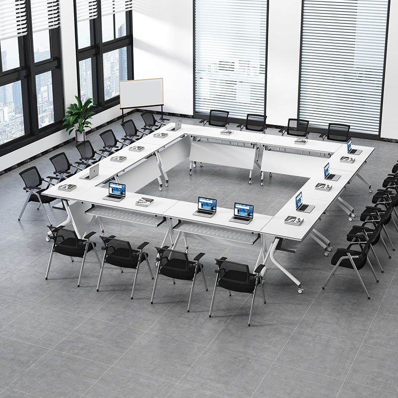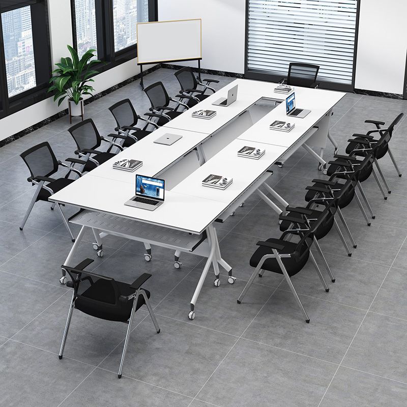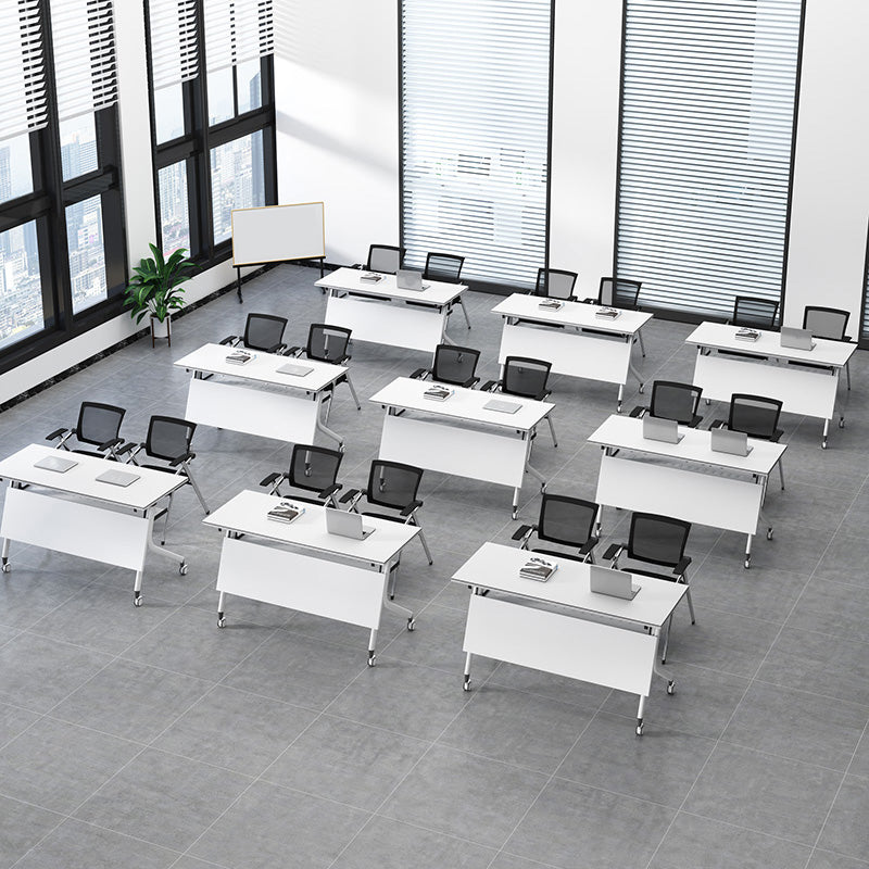 White Folding Writing Desk Rectangular Manufactured Wood Top Desk with Caster Wheels