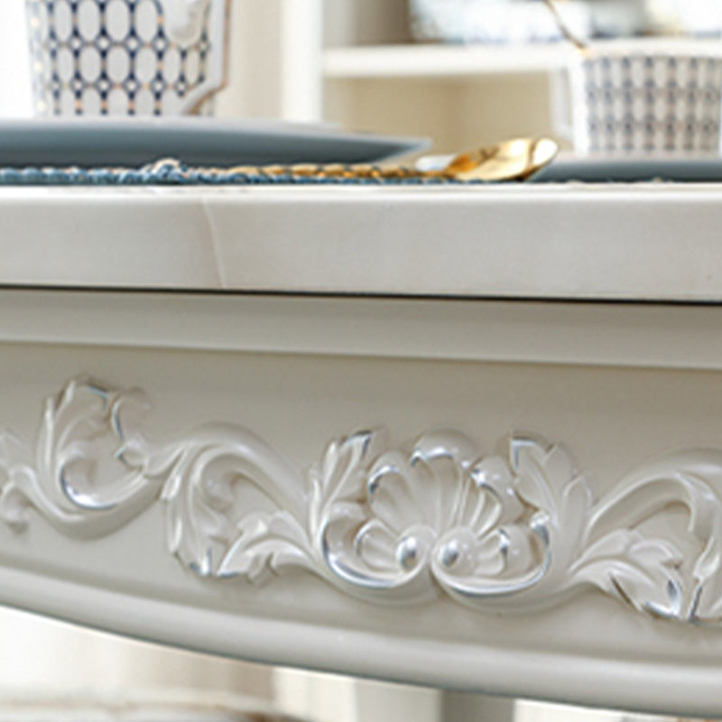 White Stone Top Dining Table Rectangle Dining Table with 4 Wood Legs