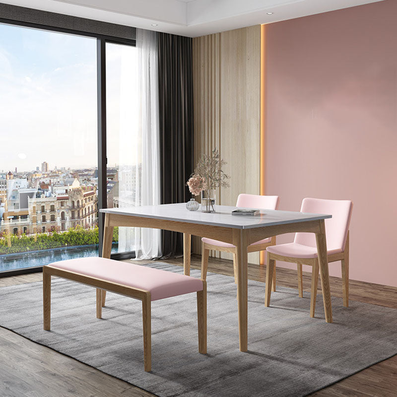 White Stone Top Table Mid-Century Modern Dining Table with 4 Wood Legs