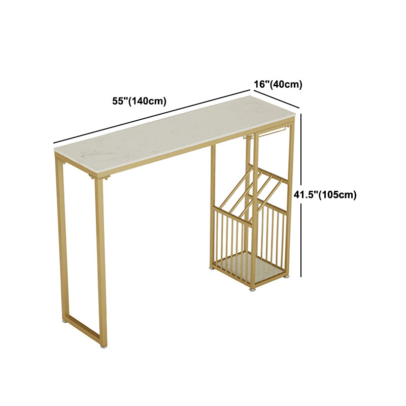 1/2 Pieces Glam Iron Bar Table Set Rectangle White Faux Marble Top Bistro Set with Shelf