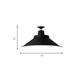 12"/16"/19.5" Wide Cone Metal Ceiling Lighting Industrial Style 1 Head Balcony Semi Flush Mount Lighting in Black