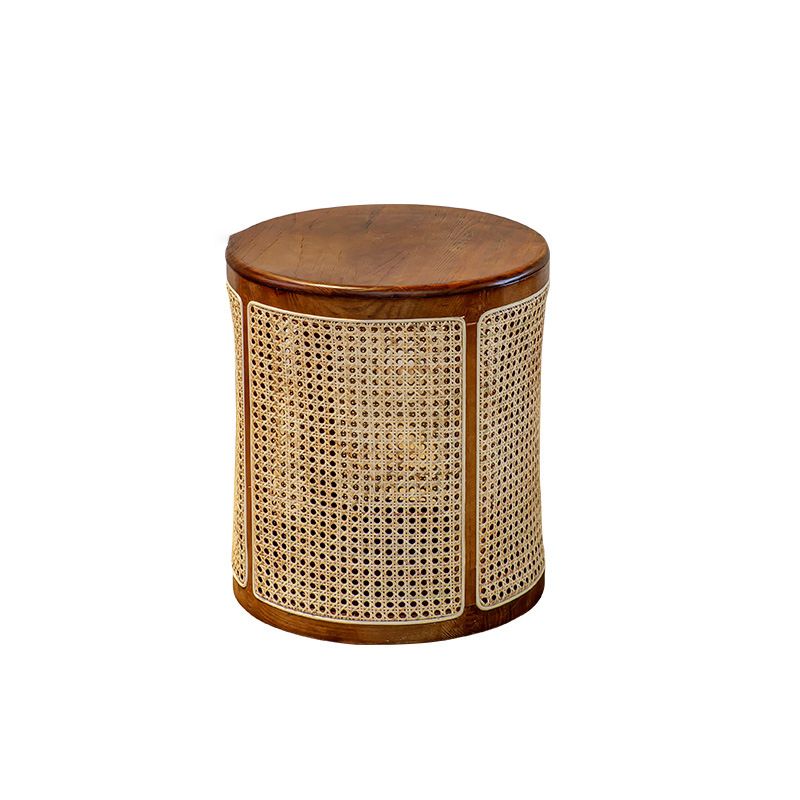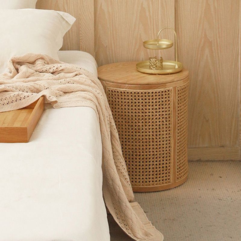 18.11" Tall Wood Round Top Side Table Drum Base End Table with Storage