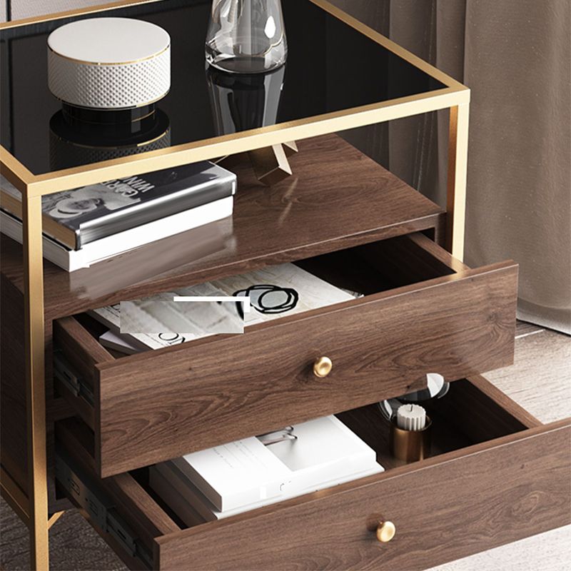 21.25" Tall Rectangular Glass Top Side Table Iron Frame 2-Drawer End Table