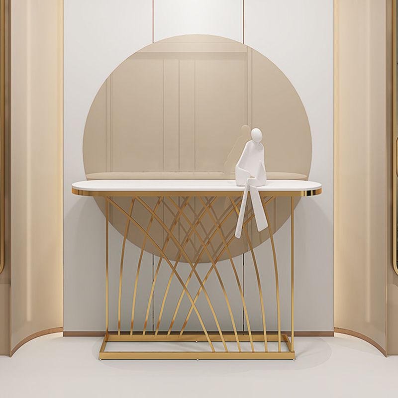 31.5-inch Tall Oval Console Table 1-shelf Stone Accent Table