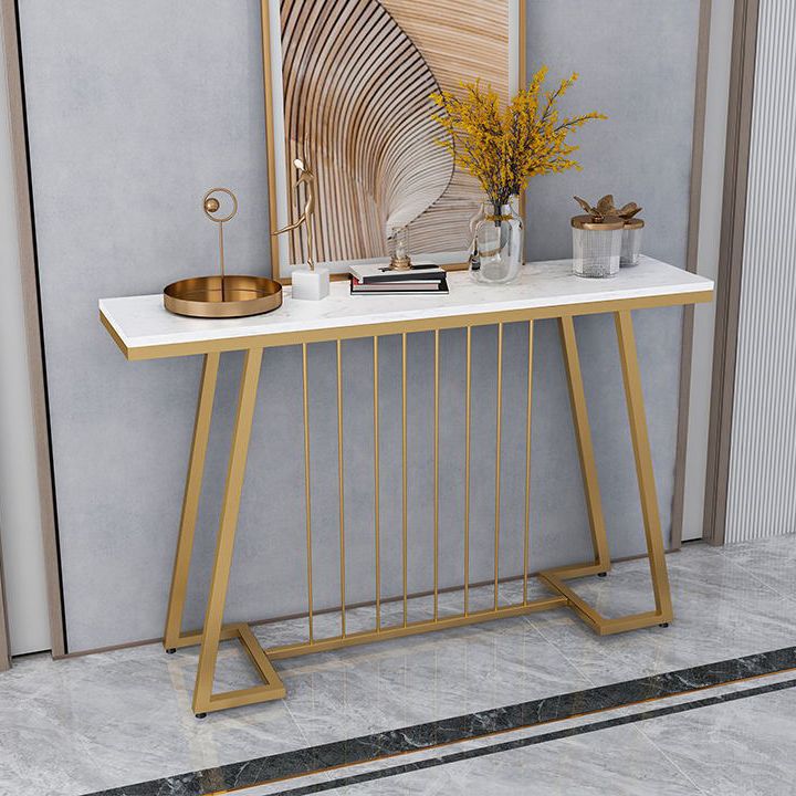 31.5" Tall Hall Console Table Marble Glam Accent Table with Abstract Base