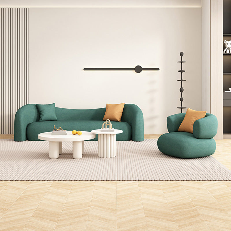 33" Wide Contemporary Sofa Green Leather Pillows Stationary Seating