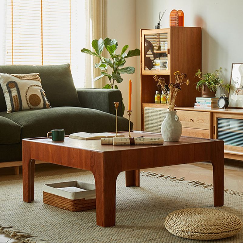 4 Legs Wooden Coffee Table Tray Top Brone Coffee Table 15.7" High