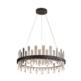 Circular Pendant Ceiling Light Modern Rectangle-Cut Crystal Black/White LED Chandelier Lamp in Warm Light, 23.5"/31.5" Wide