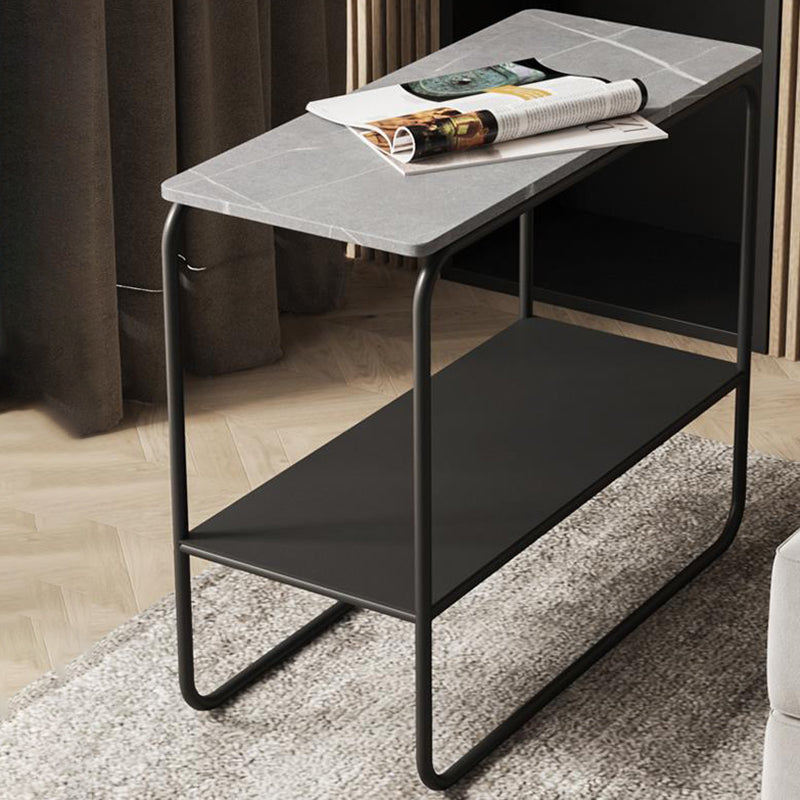 Contemporary Rectangular Side Table Slate Top Sled End Table