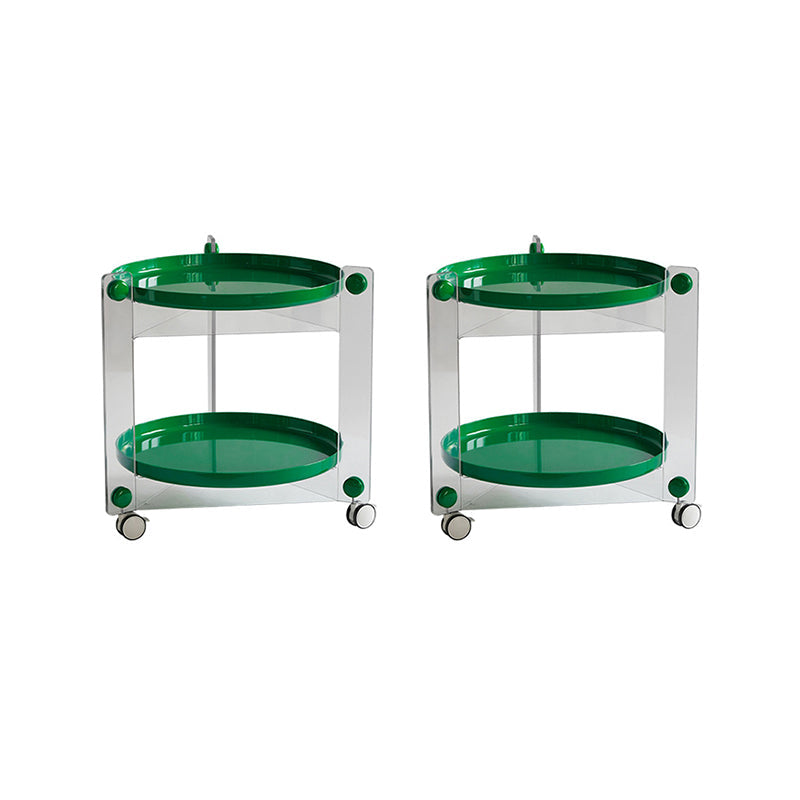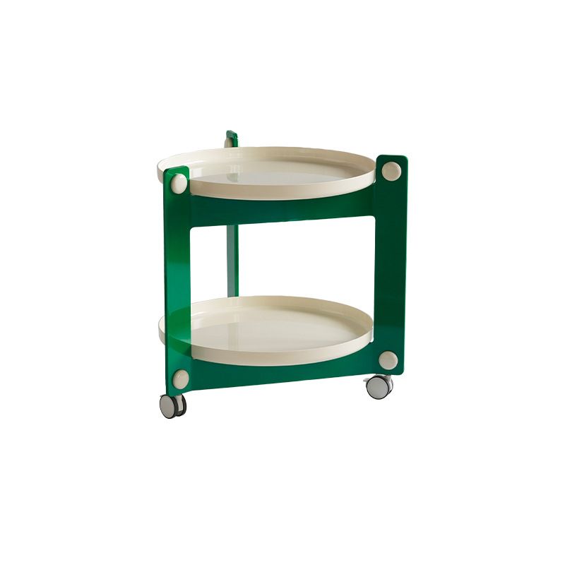 Contemporary Tray Top End Table Set Dia 25.6" 2 - Tier Side Table with Casters
