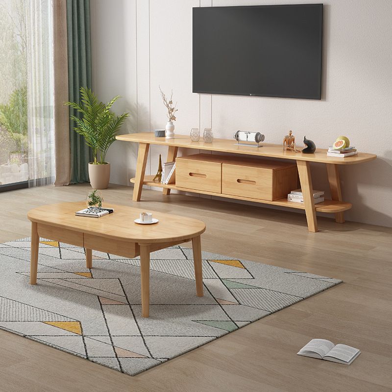 Contemporary Wood TV Stand Console Open Storage TV Media Stand with Legs for Living Room