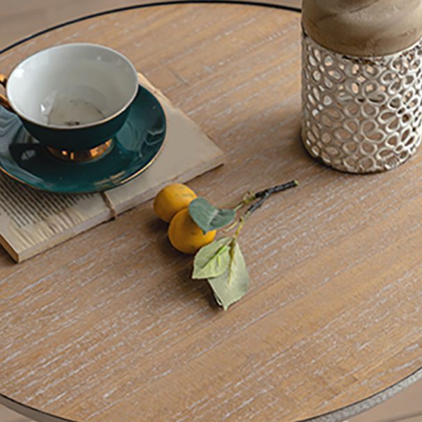 French Country Wooden Round Top Side Table Iron Pedestal End Table