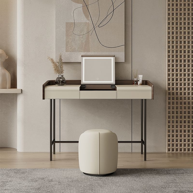 Glam Faux Leather Makeup Vanity Desk Bedroom Vanity Dressing Table