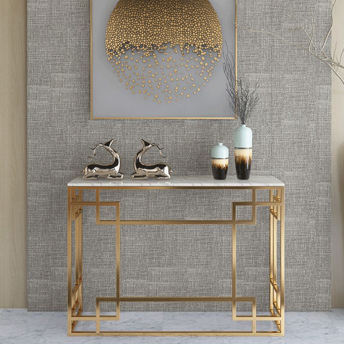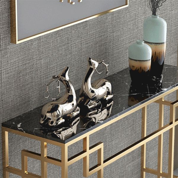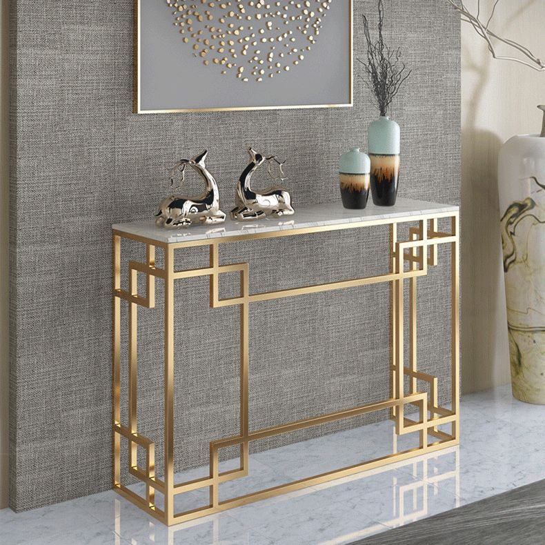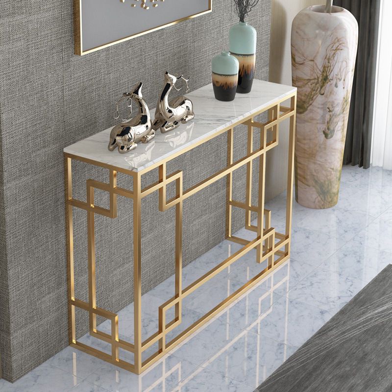 Glam Iron Console Sofa Table Rectangle Marble Console Accent Table for Hall