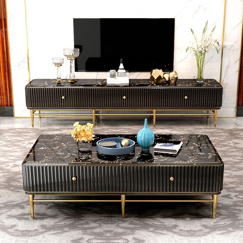 Glam Marble TV Stand Console Enclosed Storage TV Media Stand with Legs for Living Room