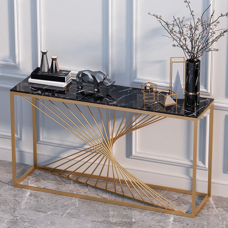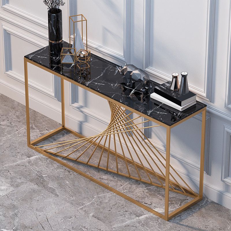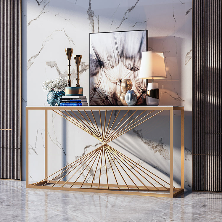 Glam Rectangle Console Table Antique Finish Console Sofa Table in Marble