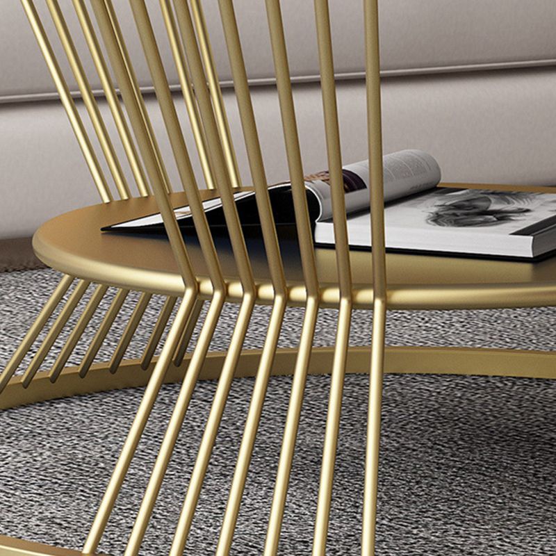 Glam Round Stone Coffee Table with Round Iron Frame Base and Shelf