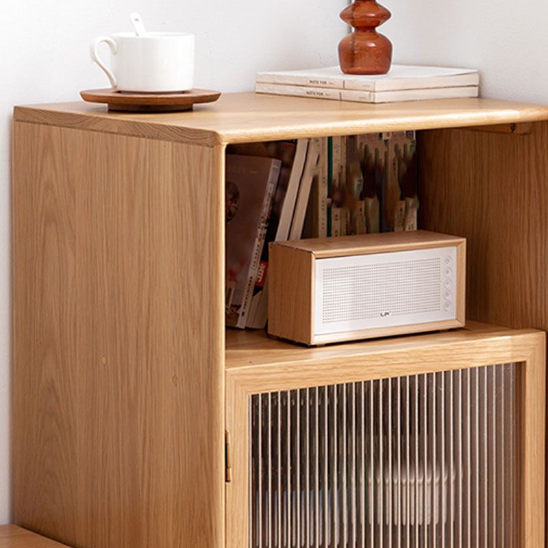 Glass Paned Solid Wood Shelves Included Modern Accent Cabinet