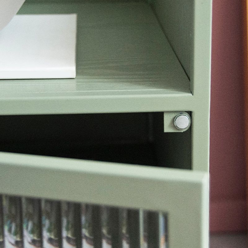 Industrial Bed Nightstand Glass and Manufactured Wood Night Table with Doors