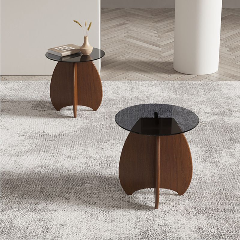 Living Room End Table Contemporary Round Abstract Glass Side Table
