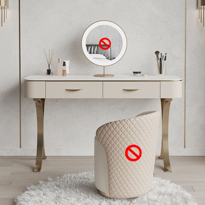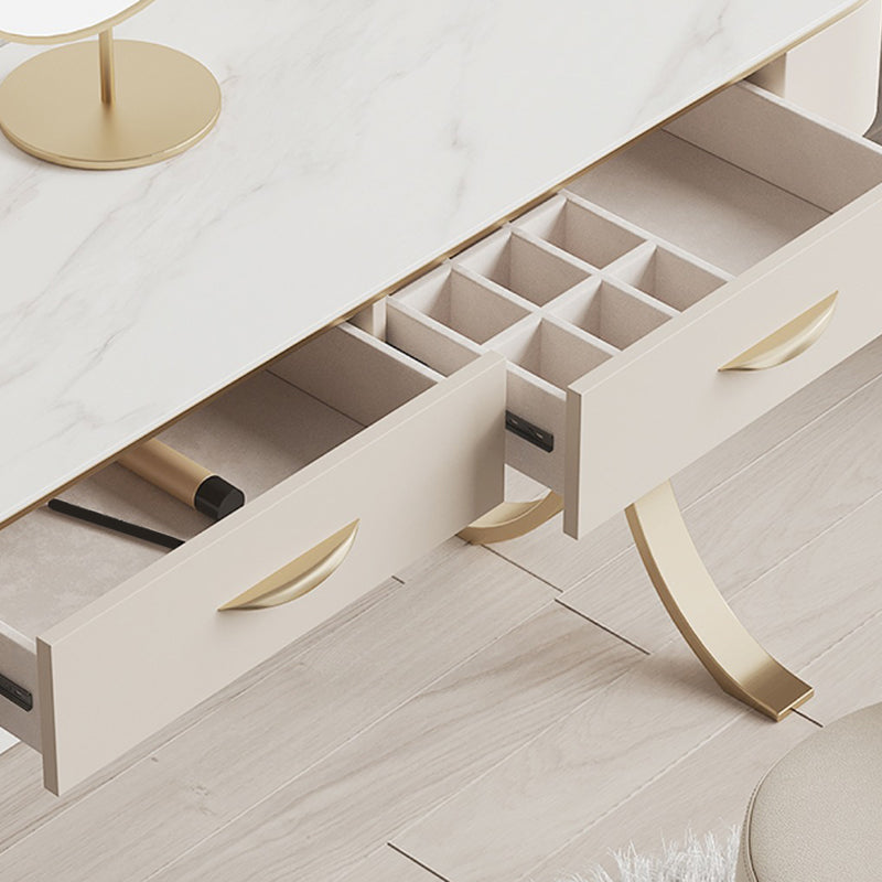 Metal with Padded Stool Vanity Table Luxurious Makeup Desk in Beige