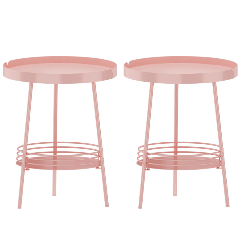 Mid-Century Metal Round Tray Top Side Table 21.6-inch 3 Legs End Table with Shelf